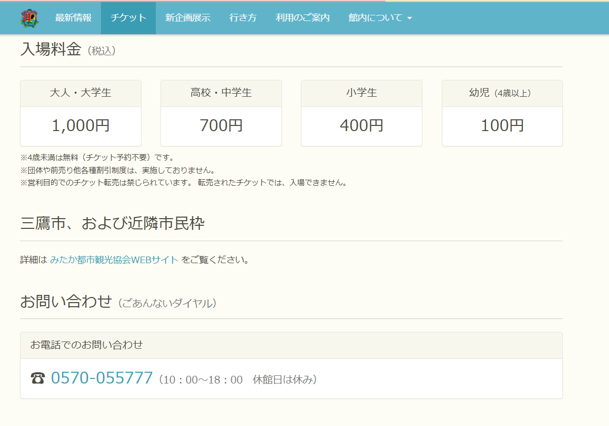 - JR 주오선을 타고 미타카역에서 하차 후, 역에서 박물관까지는 도보로 약 15분 정도 소요됩니다.