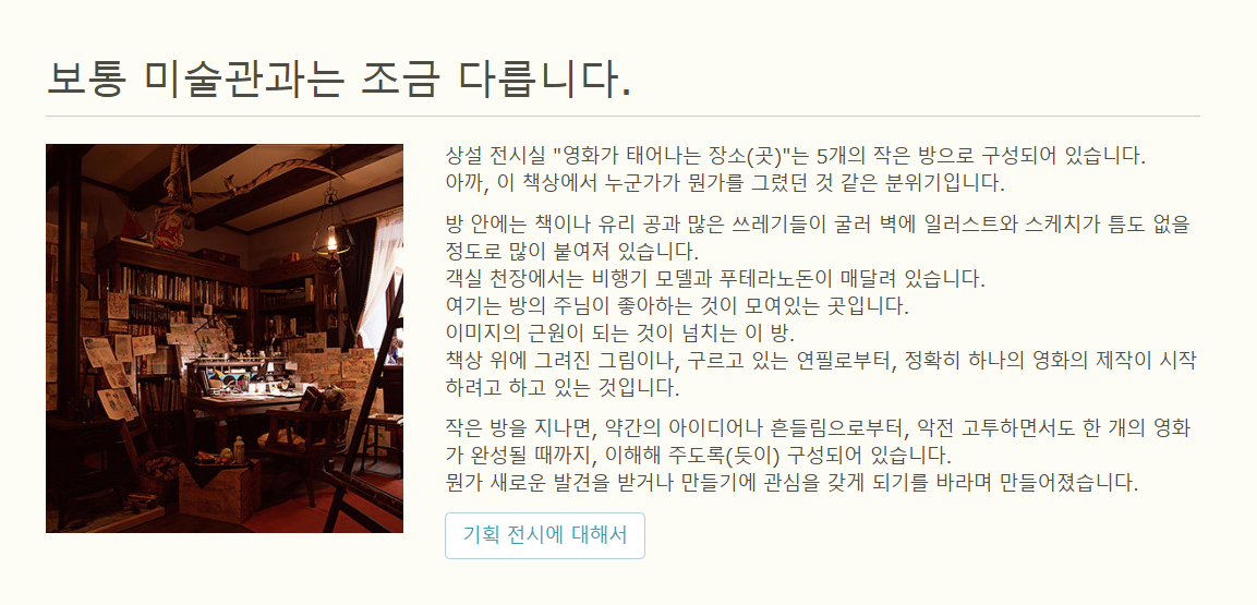 박물관을 돌아다니는 동안 많은 걸음을 걷게 되므로 편안한 신발과 옷을 준비하는 것이 좋습니다. - 미니 시네마 상영 시간 체크